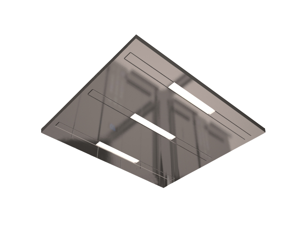 Cielorrasos fabricados en acero inoxidable, provistos de iluminación led, con batería de iluminación de emergencia incorporada de serie. Toda la gama puede combinarse a elección del cliente con cualquiera de los modelos de cabina estándar.